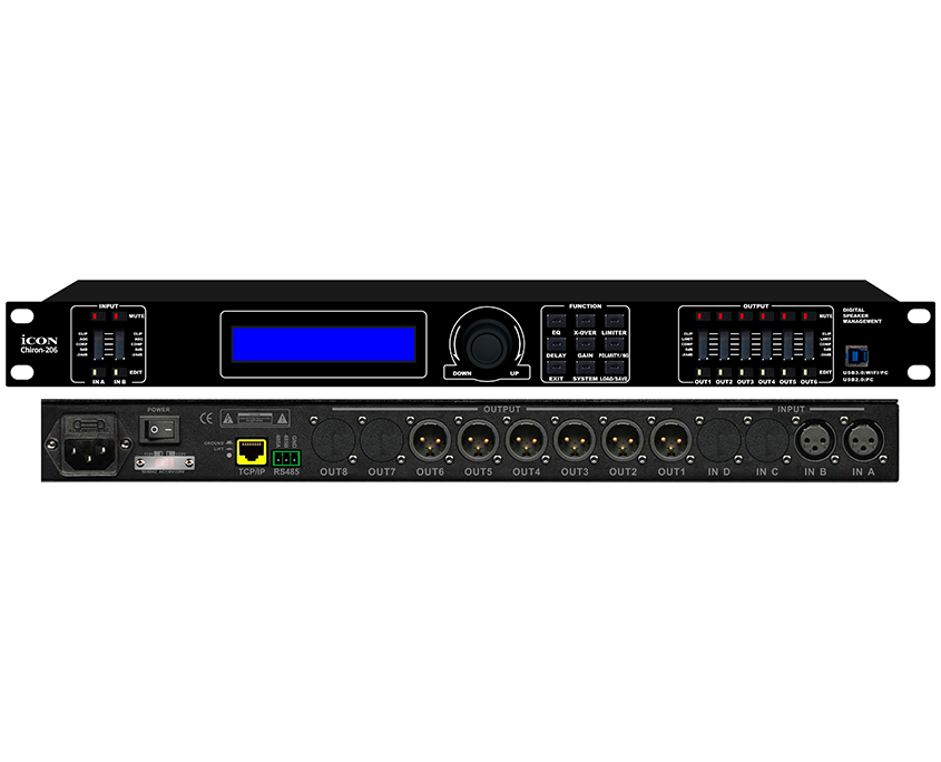 - 可選2進4出( Chiron-204 );2進6出(Chiron-206 );3進6出(Chiron-306 );4進8出(Chiron-408 )數(shù)字音頻處理器