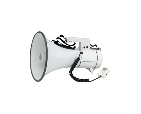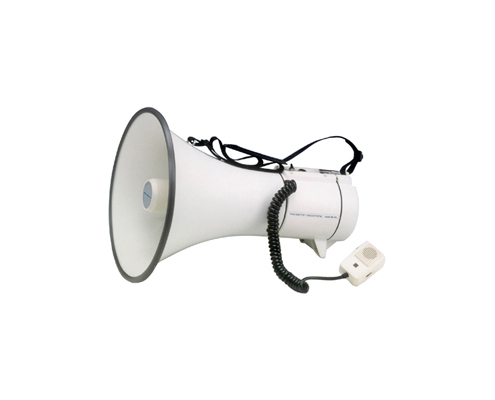 EM-25C:喊話器內(nèi)含警聲、哨聲、最大功率傳播距離:0.8~2Km外置話筒,手持